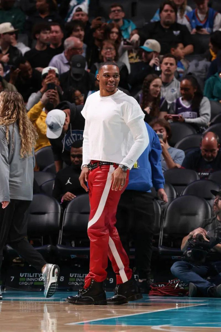 从前锋的历史和文化角度来看,叠穿一直是一种经典且实用的穿搭方式。它不错字据不同的季节和时势进行活泼搭配,既能增多脉络感,又能展现个东说念主作风。而红色动作一种具有热烈情谊抒发的样式,在前锋界一直备受青睐,它代表着热心、活力和勇气。威斯布鲁克选拔红色亮面皮裤,无疑是在抒发我方对生计和篮球的喜爱,以及前仆后继的精神。