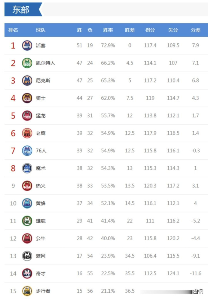 猛龙98:120负于尼克斯,尼克斯东部第三,依然拿稳了季后赛门票,猛龙东部第五,看似名次还可以,但39胜31负的战绩只比名次东部第十的黄蜂多两个胜场,第五到第十名的五支球队,胜场差距也唯唯独到两场,是以东部的季后赛经验竞争相称强烈,名循序五王人不一定稳进季后赛。