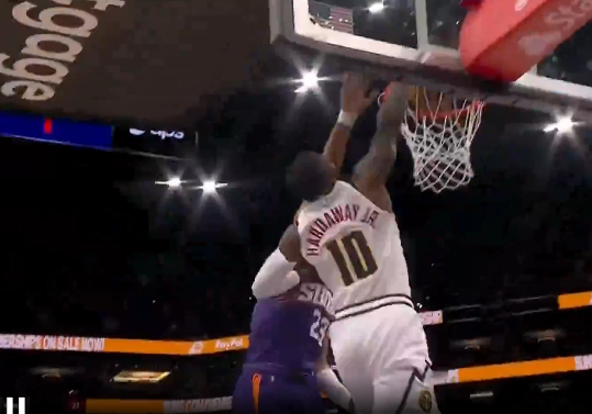 ued官方网站 哈达威快攻单手劈扣打成2+1连拿6分, 掘金追至25-30过期太阳