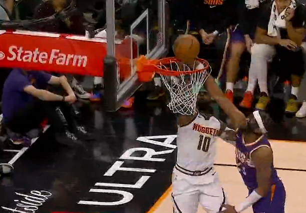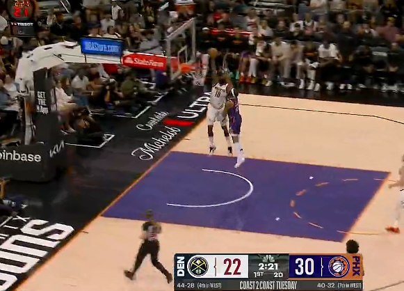 虎扑03月25日讯NBA惯例赛,掘金对阵太阳的比赛正在进行中。