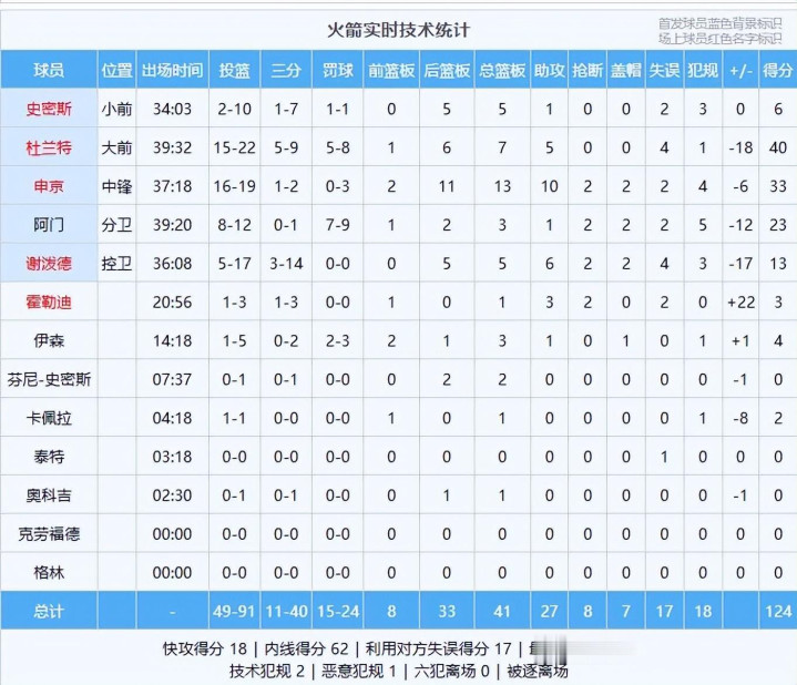 数据:杜兰特40分7板5助、申京33分13板10助2断2帽、阿门23分3板1助2断2帽、谢泼德13分5板6助2断2帽、史姑娘6分5板1助、伊森4分3板1助、霍勒迪3分1板3助2断、卡佩拉2分1板、芬尼-史姑娘2板。