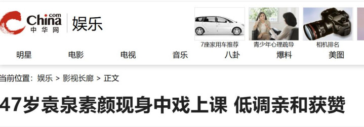 《47岁袁泉素颜现身中戏上课 低调亲和获赞》,中华网