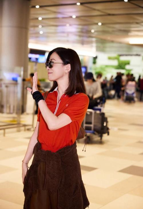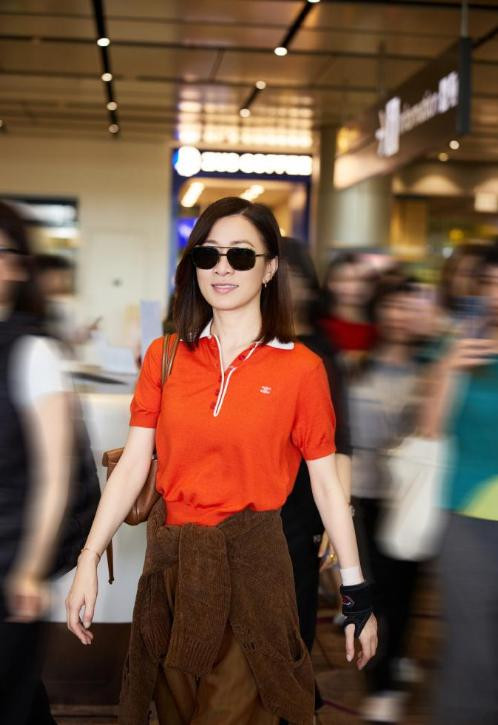 UED体育中国官方网站入口 佘诗曼机场私服真斯文! 翻领上衣+棕色直筒裤, 减龄又高档!