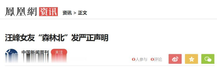 《汪峰女友“丛林北”发严正声明》、凤凰网