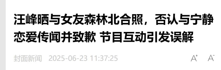 《汪峰晒与女友丛林北合照,否定与宁静恋爱听说并致歉》、中华网