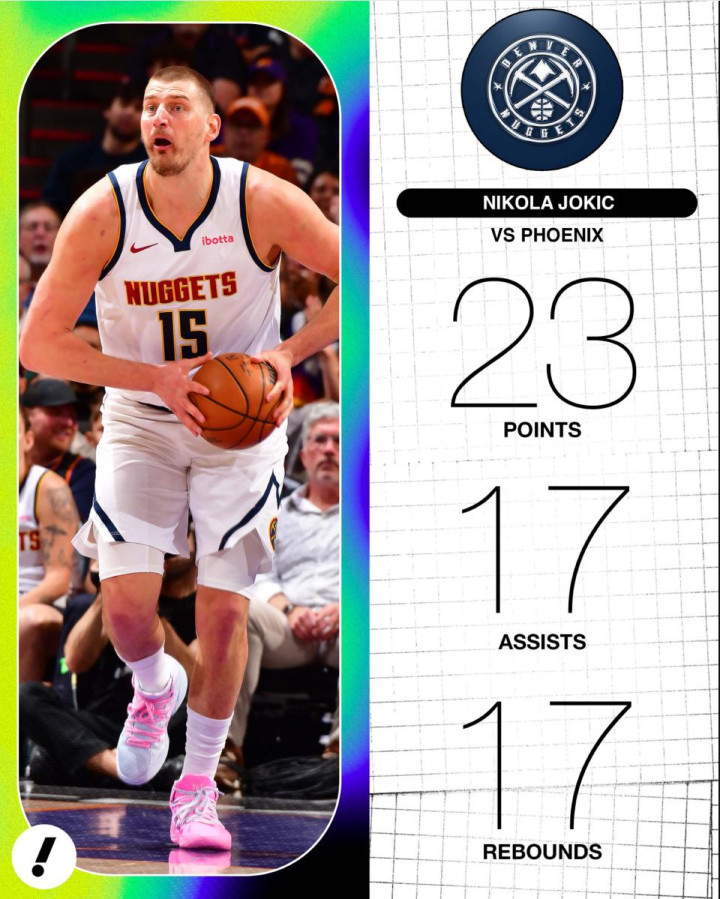 4.约基奇完成糊口第193次三双,距离历史三双王只差16次;
