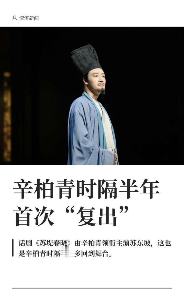 这部话剧对辛柏青来说,真谛真谛不一般。早在朱媛媛还辞世的时代,他就启动操办,剧中他演苏轼,中枢便是想念一火妻,尽是深情和缺憾。