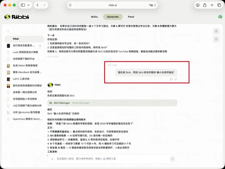 这两天的我是一边养虾一边内测喂蛙,这个新的内容AgentRibbi实质上是把多个基础的Skill合成了一个大的Skill,我更风光称他们界说的Skill为Workflow(使命流)。