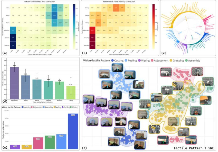 这是迄今为止规模最大、质地最高的视触觉操作数据集之一,当今已收录2万余条操作轨迹,秘籍近百类任务和百余种物体,并将构兵模式系统性分为擦抹、削皮、切割、持取、安设以及手内调度六类,在数据相聚经由中严格保证视觉、触觉与行为的高精度同步,并保留了原始传感器频率。该数据集也同步受到了业界招供,赢得由魔搭社区(ModelScope)专揽的“EAI-2025年度10大数据集”奖项。