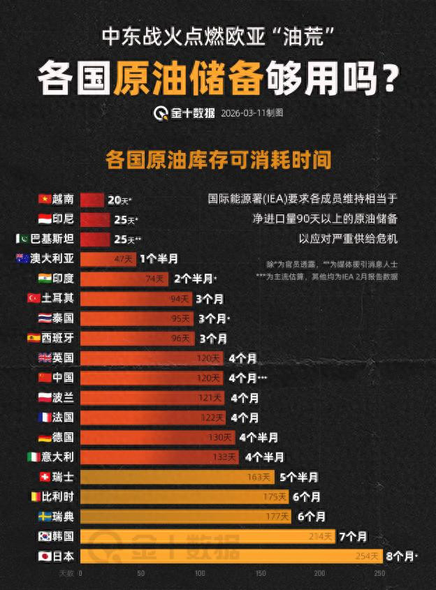 先给你看一份数据,笔据金十数据统计的《列国原油可破钞时间》走漏:我国的原油储备,仅够4个月的破钞。