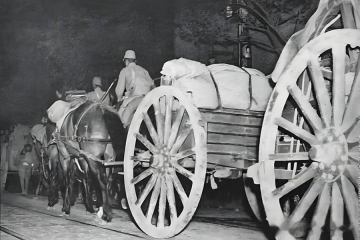 日军辎重队列马车