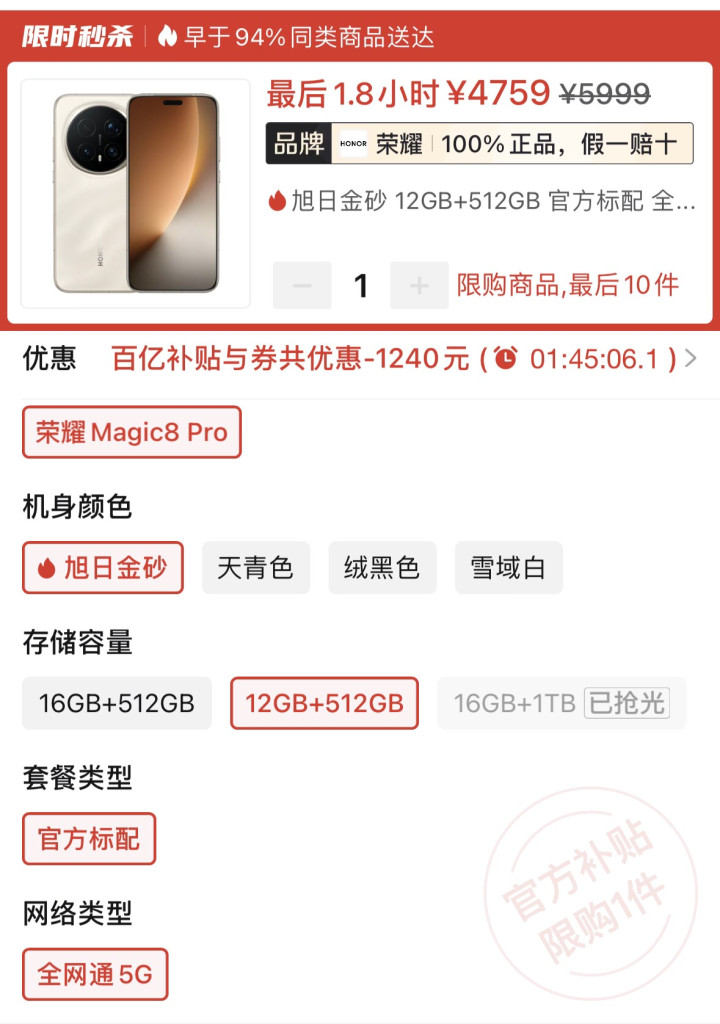 总的来说,就荣耀Magic 8 Pro不是那种“偏科生”,它更像一个全科满分的选手,所给东谈主的感受是,性能强、屏幕好、影像猛、续航久、耐费用高、AI明智,能把消耗者关于旗舰的通盘期待一项项崇拜完竣,要是你思要一部能陪你打游戏、拍大片、熬夜追剧、远行出差,还能在要道时刻稳住阵地的居品ued(中国)官方网站入口,就荣耀这款旗舰实足是可以的选拔,而就价钱层面亦然出现了严重下调加捏,参考到如今电商平台中的售价情况,512GB的内存规格则是出现了1240元的大降价了。