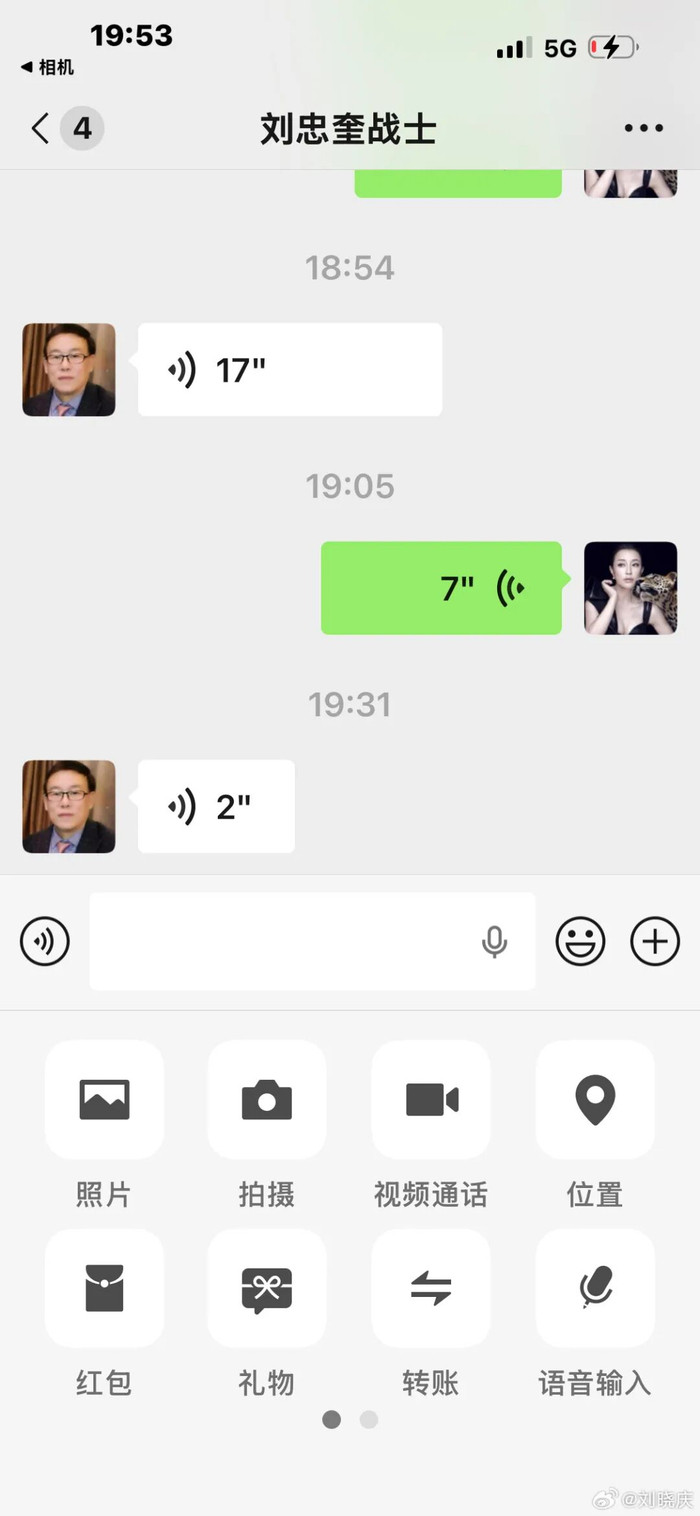 刘晓庆再发微博,晒出相片与微信聊天对话框,并配文“当今的我”。