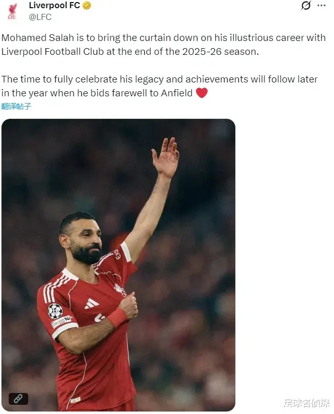 官方:利物浦文告萨拉赫将在本赛季实现后离队,实现其9年赤军生计,这是两边究诘后达成的共鸣。