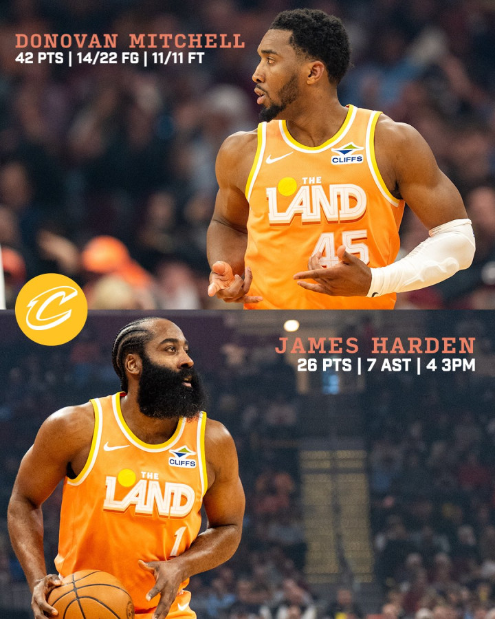 赛后,骑士社媒共享哈登与米切尔的个东说念主数据海报,并配文:“咱们的后场球员又一次火力全开。”