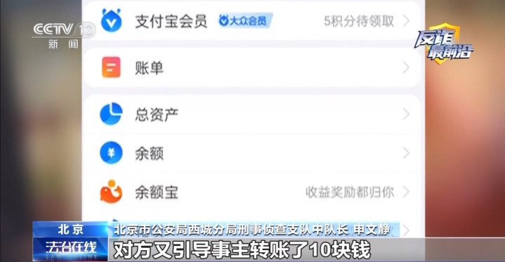 北京市公安局西城分局刑事考核支队中队长申娴静:对方又让当事者点击支付宝内部的总钞票选项,看罢了总钞票以后对方又指引当事者转账了10块钱,转完账之后又回到总钞票的界面看了一下余额,莫得因为转账有变化。对方即是思告诉当事者这个转账举止不会导致支付宝里的余额变化,当事者就肯定了。