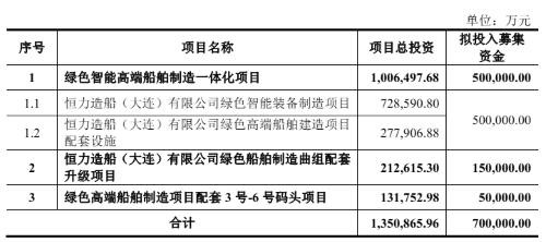 公告裸露,本次召募金资金将用于绿色智能高端船舶制造一体化面貌、恒力造船(大连)有限公司绿色船舶制造曲组配套升级面貌以及绿色高端船舶制造面貌配套3号-6号船埠面貌。