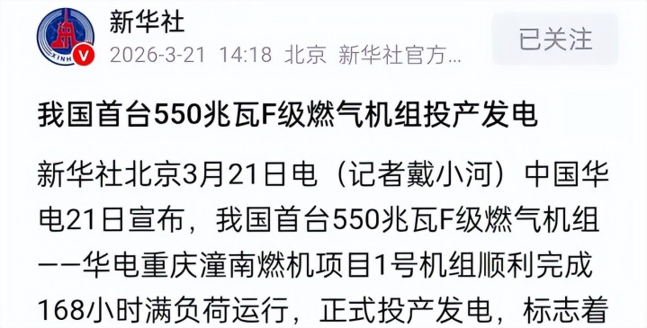 本年3月21日,这一场景就在我国华电重庆潼南燃机样式1号机组上出现了。它是我国首台550兆瓦F级燃气机组,刚刚完成168小时满负荷试开动,当日负责投产发电,新华社、央视网等巨擘媒体同步官宣。