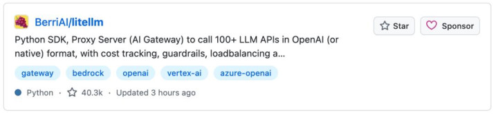 在GitHub上,该形貌(BerriAI/litellm)已斩获超4万颗星,月下载量高达9700万次,是贯穿成立者与上百个LLM(如OpenAI、Anthropic、GoogleVertex等)的底层要津。