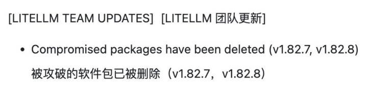 根据最新的分解,这次LiteLLM供应链报复事件已干预算帐与止损阶段。从官方团队发布的更新信息来看,PyPI仓库中被黑客植入坏心代码的羞辱版块v1.82.7和v1.82.8已被崇敬删除。
