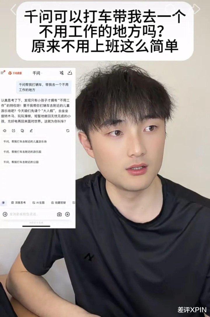 像这个毛孩子,告成让千问维护打个车,要求是车主必须开个迈巴赫,路虎拼凑也凑活,但打游戏时刻得好,还得送皮肤,临了小孩哥我方个儿坑东谈主了,车主也不成骂东谈主。