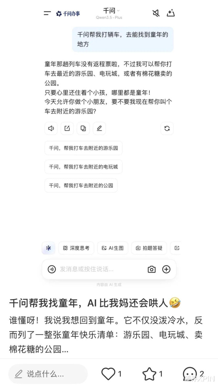 这个势头还在愈演愈烈,最近千问刚上新了一个 AI 打车智商,本思着造福群众,让群众打车更方便。