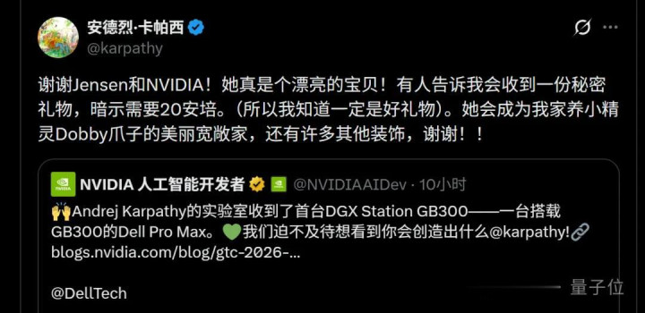 首台DGX Station(GB300)送给了卡帕西——这位AI时期的个东说念主开发者代表。