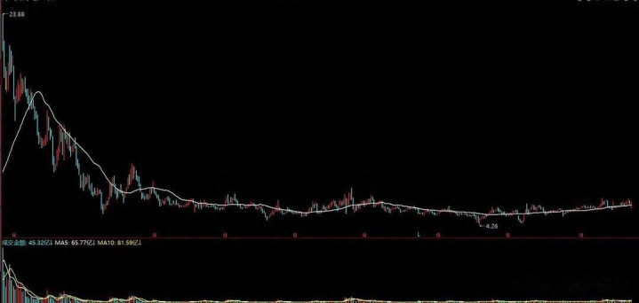 说“好奇”,是因为它的股价走势图,简直比中年男东谈主的心电图还放心——不,应该说是惨淡。连跌三年,然后又横了七年,从当年的23块多,全部磨到了现时的4块多。你如果十年前买了它,臆测现时都不好兴味跟东谈主提炒股这事儿。