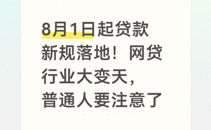 列位有网贷、奢靡贷的一又友介怀了!8月1日起,金融监管部门发布的《对于进一步程序个东说念主奢靡贷款业务的示知》崇拜现实,网贷行业的高息收割花式难以为继,岂论是平台也曾告贷东说念主,皆迎来了全新的监管期间。